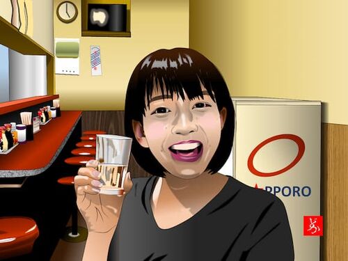 マウスで描いたエクセル画。 人気飲酒番組『町中華飲ろうぜ』から「伝道師」こと女優の坂ノ上茜ちゃんを投入。 これでレギュラー3人そろい踏みだ。 パーツ数528。